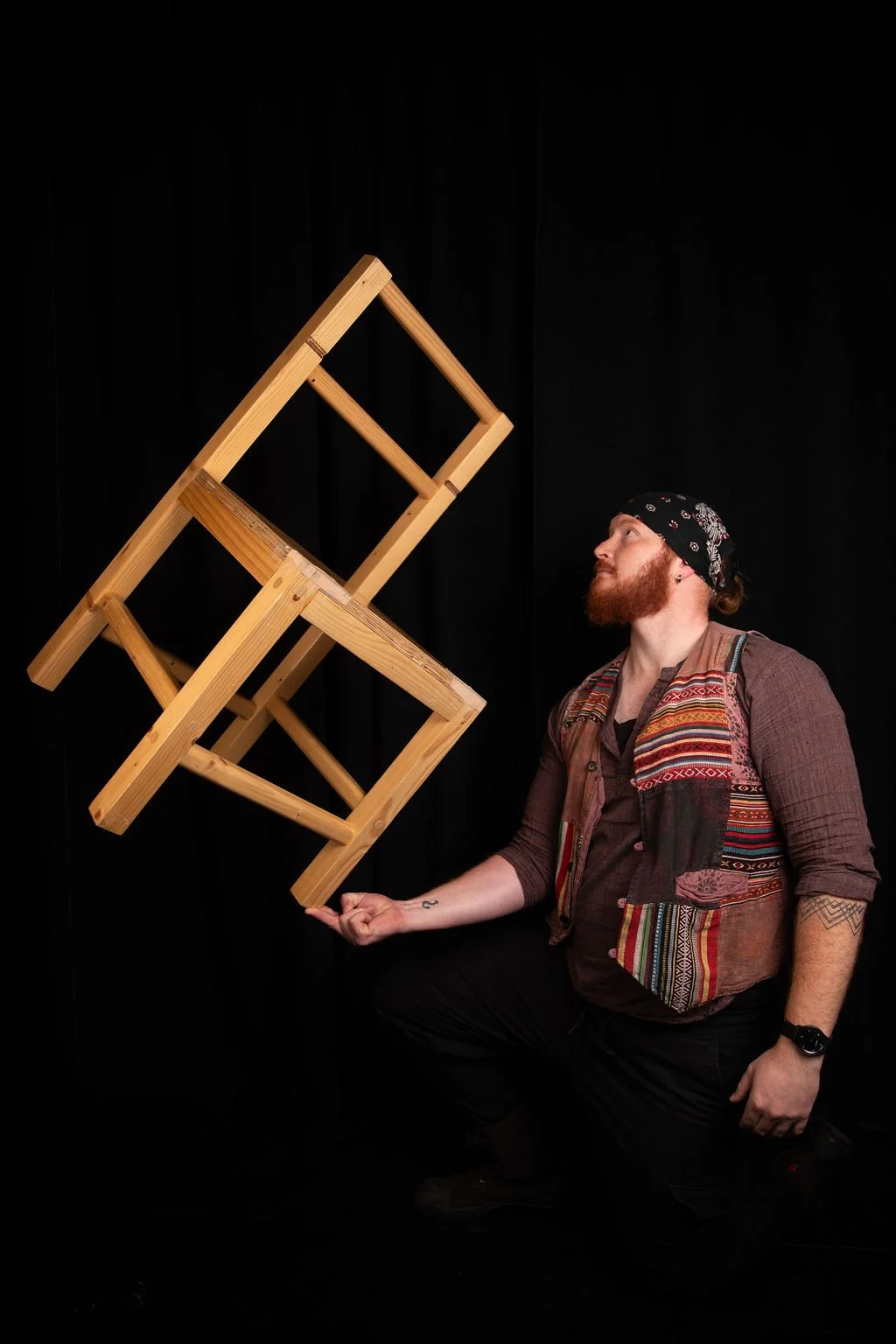 Tom was a fidgety child, forever told off for tapping, pacing, and using regular objects in irregular ways. It was no surprise then, that when he discovered circus arts at SuperSillyUs Circus at the age of 10, he was instantly hooked. As a teenager he was introduced to fire spinning - igniting a passion which has burned brightly ever since. He went on to co-found Fyrebird Flow Collective - a fire spinning troupe based in Lutruwita/Tasmania, that has been performing at festivals and events across the state for the past 8 years.